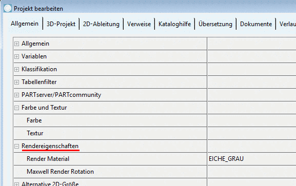 Der Menüpunkt Rendereigenschaften wird nur auf Projektebene bei 3D-Projekt und 3D-Wälzlager angezeigt. | |