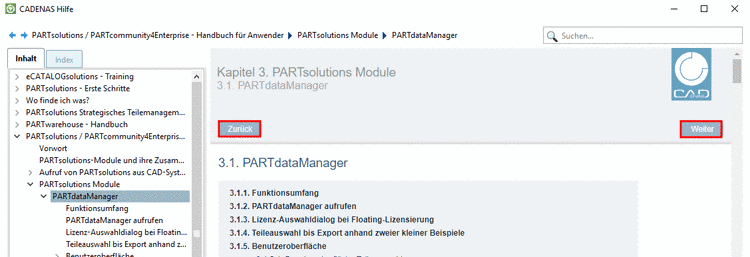 Mit gelangen Sie zum hierarchisch nächst höheren Kapitel (der Button findet sich unten am Seitenende).