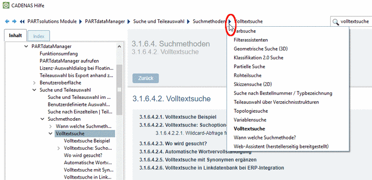 Der Suchpfad zeigt, wo Sie sich gerade befinden. Das ist insbesondere hilfreich, wenn Sie buchübergreifenden Links gefolgt sind.