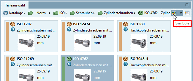 im CAD-System im PARTsolutions-Menü bzw. in Toolbar mit