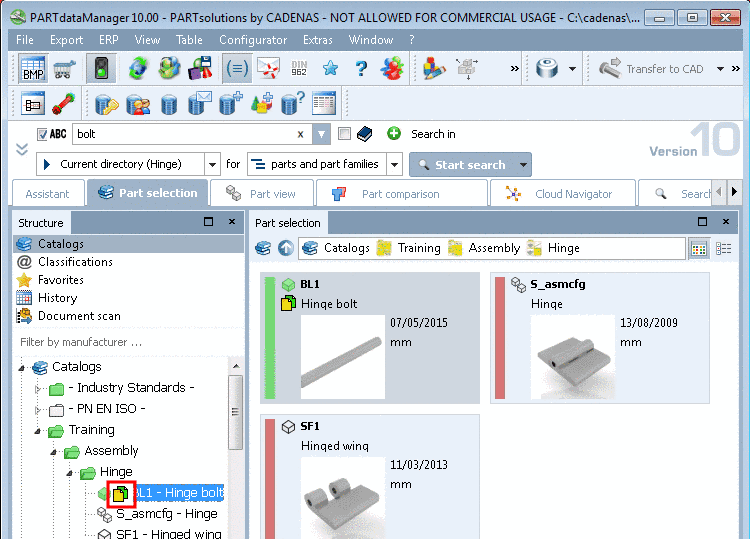 • Es erscheint beim Aufruf in PARTdataManager jeweils die entsprechende Meldung.