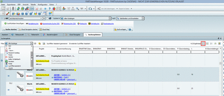 Wenn die Suche breiter angelegt ist (viele Kataloge oder unterschiedliche Teile), dann gibt es mehr unterschiedliche Variablen und somit können dann Felder auch leer bleiben. Siehe folgende Abb.