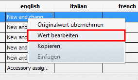 2. Klicken Sie in die Zelle der gewünschten Übersetzungssprache mit der rechten Maustaste.