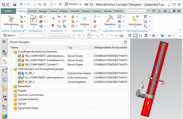 Mit V11 können PARTsolutions Bauteile im NX Mechatronics Concept Designer getestet werden.
