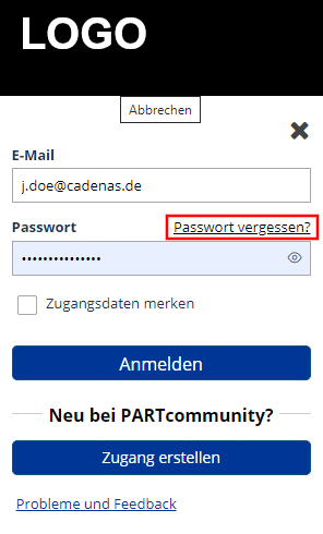 2. Geben Sie die E-Mail-Adresse ein, mit der Sie sich registriert haben. An diese Adresse wird eine E-Mail mit weiteren Anweisungen zum Ändern des Passworts geschickt.