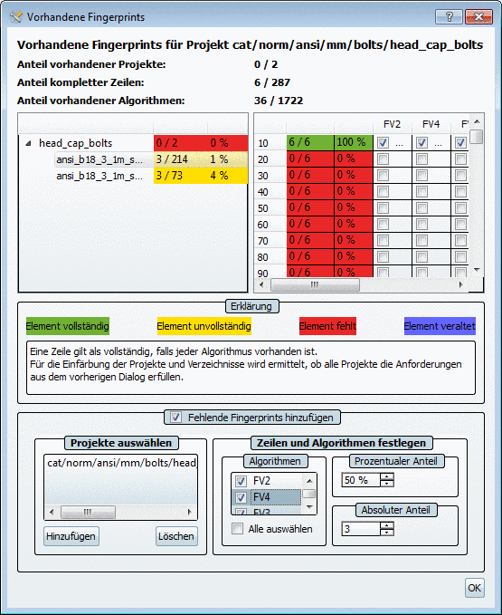 Sobald eine bestimmte Ausprägung in der Verzeichnisstruktur selektiert wird, ist die fehlende Entsprechung rechts im Dialogbereich Zeilenzuordnung ebenfalls zu erkennen: