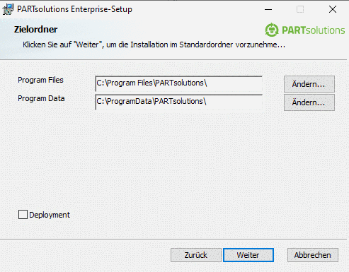Installation durch Ausführen des Paketes partsolutions_enterprise_xxx.msi.