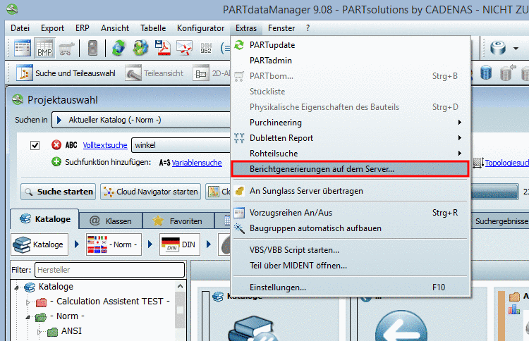 Sie können den Dialog jederzeit über Menü Extras -> Menüpunkt Berichtgenerierungen auf dem Server... öffnen.