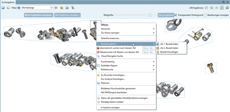 Sie können Bauteile per Kontextmenübefehl in den Bauteilvergleich übernehmen.