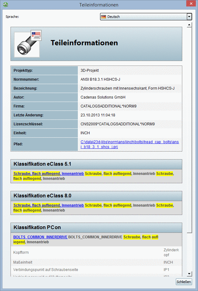 Bauteil laden in Standardsuche, im Details-Modus