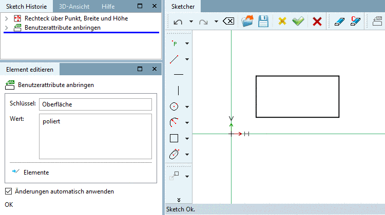 Individuelle Merkmale festlegen, die später zusammen mit dem markierten Element an das importierende CAD-System übergeben werden sollen