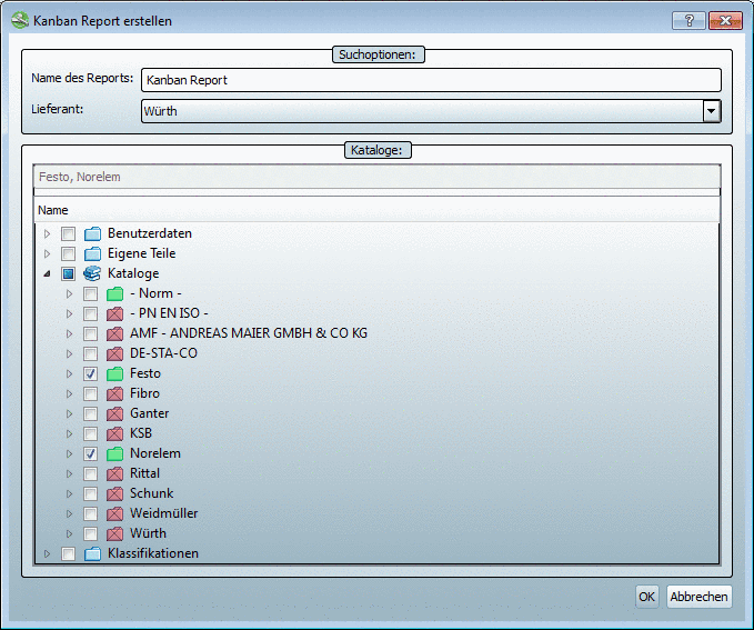 geändert wurde, dann werden im Dialogbereich Katalog alle Projektzeilen, das Projekt