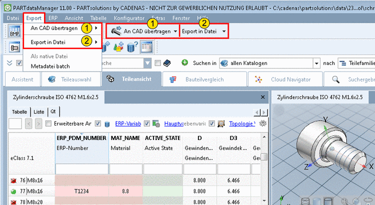 Nachdem ein Bauteil (eine Baugruppe) eindeutig bestimmt ist, können Sie es an Ihr CAD-System übergeben.[89]