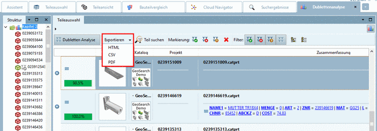 werden in der Ergebnisliste nur noch als Dublette markierte Teile