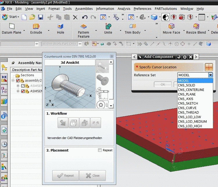 Mit Version 9.07 wird im NX-Platzierungsdialog optional ein "Reference Set" Dialog angeboten (Aktivierung per Konfigurationsdatei).