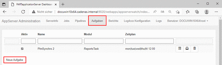 Öffnen Sie im Dashboard die Registerseite Aufgaben und klicken Sie auf den Button .