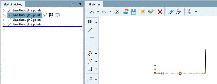 Manche Aktionen werden direkt in der Sketch Historie mit einem Icon gekennzeichnet: