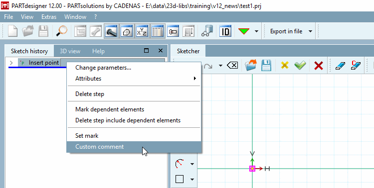 Im Kontextmenü eines jeden Konstruktionsschritts finden Sie den Befehl Benutzerkommentar [Custom comment].