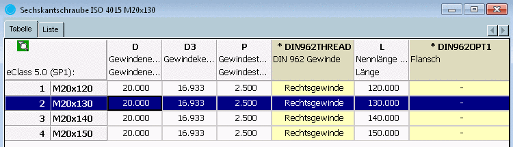 Sechskantschraube L > 150 AND D = 20 Sechskantschraube L = 150 OR D = 20