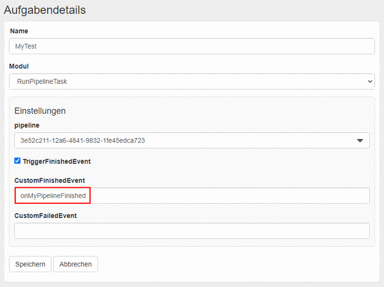 Vergeben Sie unter CustomFinishedEvent oder CustomFailedEvent einen Namen.