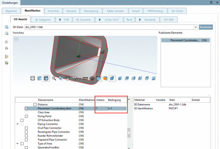 Mit V12 kann nun unter Publizierte Elemente für Klassen ein Instanzname und eine Bedingung eingetragen werden.