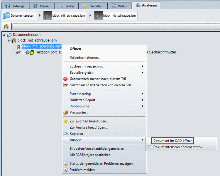 Mittels Kontextmenübefehl Analysen -> Dokument im CAD öffnen können Sie ab V9.05 die Teile des Dokumentenscans wieder im CAD öffnen.