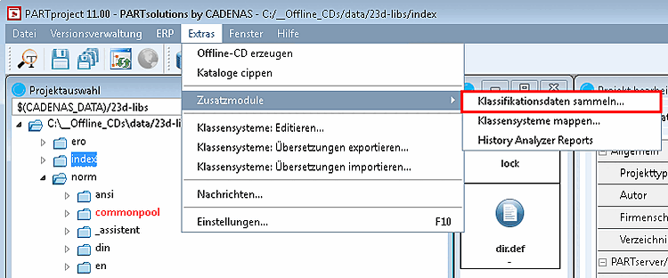Rufen Sie den Classlister unter PARTproject -> Extras -> Zusatzmodule [Additional modules]-> Klassifikationsdaten sammeln... [Collect classification data...] auf.