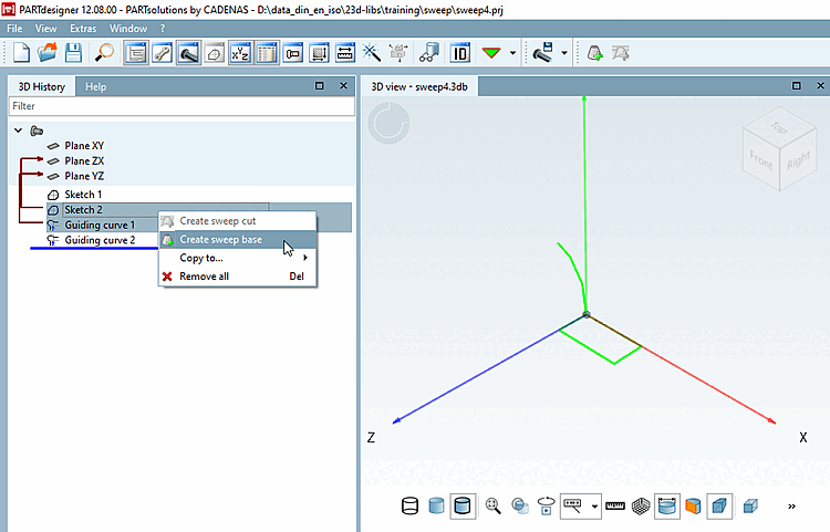 Klicken Sie auf den Kontextmenübefehl Basis Verlauf erstellen [Create sweep base].