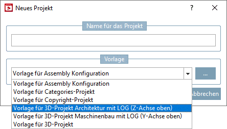 Vorlage für 3D-Projekt Architektur mit LOG (Z-Achse oben) (LOGDEST-Variable mit Default Architektur als Zielmarkt)