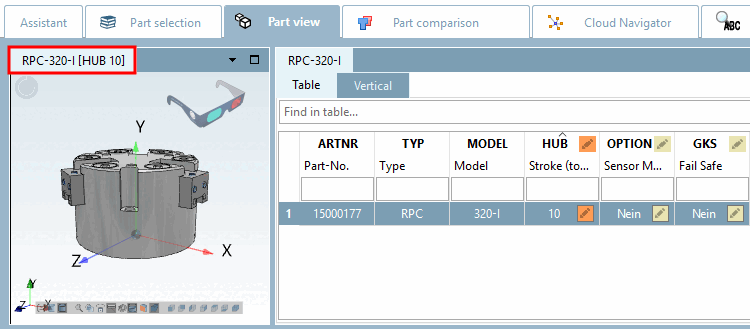 Im PARTdataManager erkennen Sie die NB und LINA schnell und einfach an den Titelzeilen der Tabelle und der 3D-Ansicht: