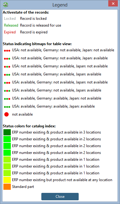 Verzeichnisse und Projekte im Katalogindex können aber durch Vielfarbigkeit viel mehr Informationen transportieren: "Enthält Vorzugsteile", "Enthält Standardteile", "Bereits verwendet an allen Standorten", "Bereits verwendet an zwei Standorten", "An keinem Standort verwendet, aber mit ERP-Nummer", etc.