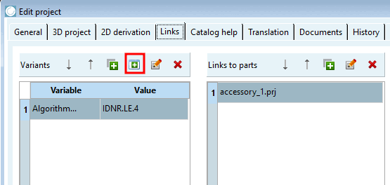 Im Dialogbereich Varianten [Variants] können Sie optional bestimmen, ob das Zubehörteil für das ganze Projekt angezeigt werden soll oder nur für bestimmte Zeilen.