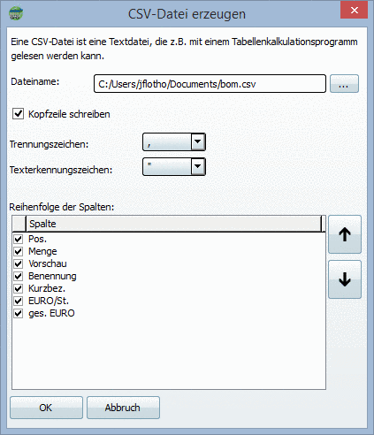 Sie kann später von einem CAD-System aus importiert werden. Über verschiedene Eingabefelder lassen sich bereits in PARTbom Tabellen-Darstellungskriterien festlegen, die dann im CAD-System berücksichtigt werden.