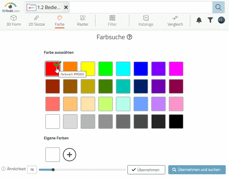 -> Die Vorschaubilder der Ergebnisteile zeigen nicht unbedingt die Suchfarbe.