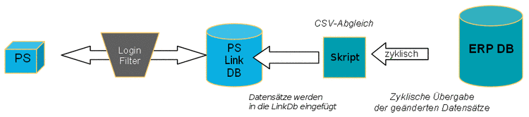 täglich) mittels einer vom ERP-System exportierten CSV-Datei an