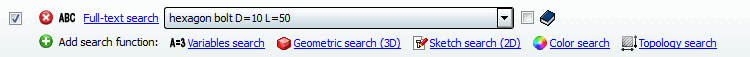 Volltextsuche [Full-text search] | Variablensuche [Variables search] | Geometrische Suche (3D) [Geometric search (3D)] | Skizzensuche (2D) [Sketch search (2D)] | Topologiesuche [Topology search]