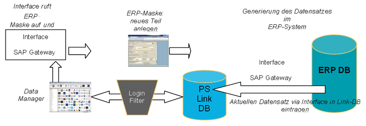 • Das Interface legt dieses Teil im ERP-System mit einer neuen ERP-Nummer an und der gesamte Datensatz wird in die LinkDB übertragen