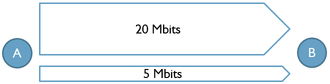 Bandbreite definiert wieviele Daten parallel übertragen werden können. Z.B. kann eine 10 Mbit-Verbindung 1,25 Mbytes pro Sekunde übertragen.