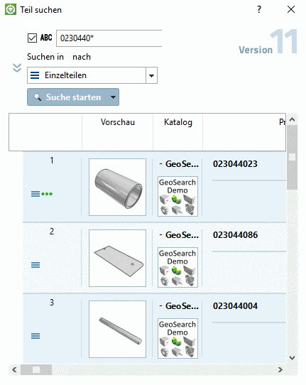 Nack Klick auf die Schaltfläche öffnet sich das Dialogfenster Teil suchen.