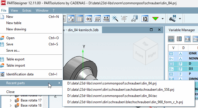 Liste der zuletzt geöffneten Dateien - Auswahl durch einfachen Mausklick auf eine Zeile in der Auflistung.