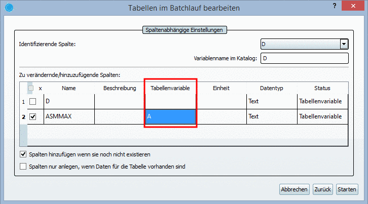 Dialog zur Eingabe der Klassenvariablen öffnen