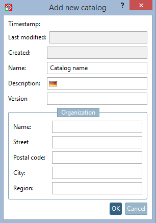 Sie können einen Katalog komplett neu erstellen. Klicken Sie hierzu unter Arbeitsbereich [Workspace] -> Kataloge auf den Kontextmenübefehl Neuen Katalog hinzufügen [Add new catalog].