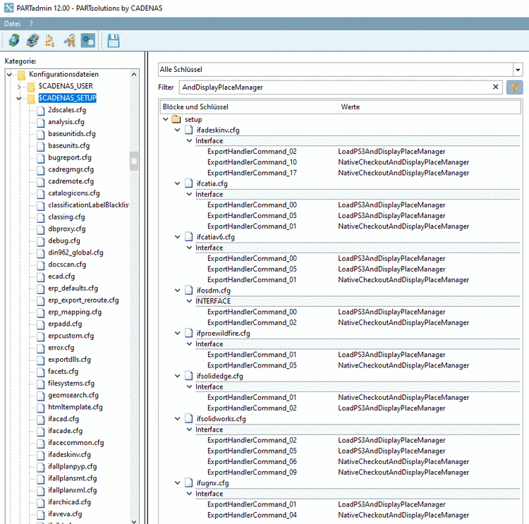 Ersetzen Sie in der Konfigurationsdatei if<cadname>.cfg alle Schlüssel LoadXYZAndDisplayPlaceManager mit LoadXYZAndPlace.