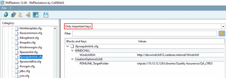 The most important keys will be displayed either when searching for the keyword "Simple" in the configuration file or when filtering in PARTadmin with Only important keys. | |