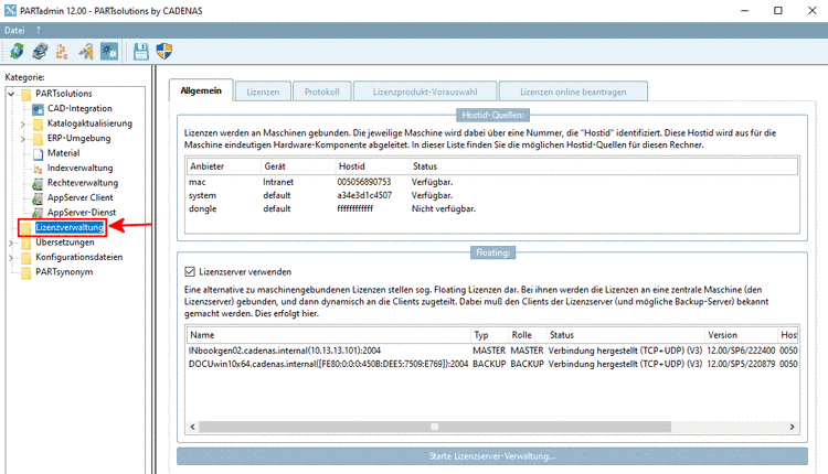 [18] Die Schritte innerhalb der Lizenzverwaltung sind an jedem Einzelplatz zu wiederholen.