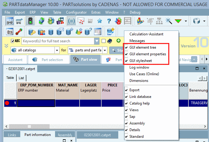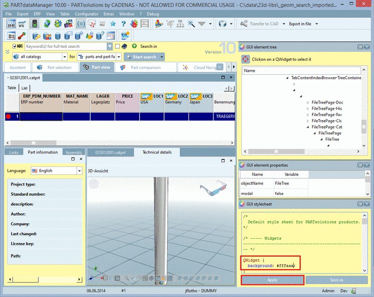 Under $CADENAS_SETUP/styles, the default.css file is used for the GUI