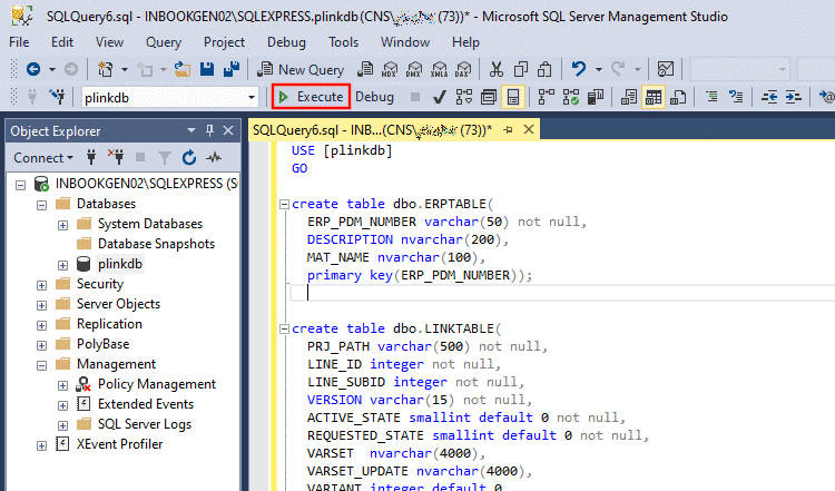 plinkdb_reuse.sql(unter..\tools\databases\MSSQL) verwenden.USE [master] GO CREATE LOGIN [erpuser] WITH PASSWORD=N'erpuser', CHECK_EXPIRATION=OFF, CHECK_POLICY=OFF GO CREATE DATABASE [plinkdb] ON ( FILENAME = N'<DBFILE>' ), ( FILENAME = N'<DBLOGFILE>' ) FOR ATTACH GO if not exists (select name from master.sys.databases sd where name = N'plinkdb' and