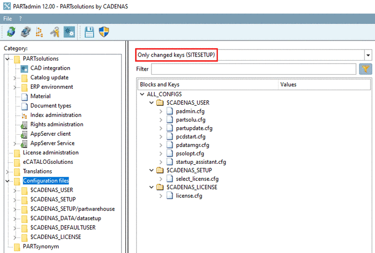 Führen Sie Änderungen an Konfigurationsdateien in PARTadmin aus, um sicherzustellen, dass diese in $CADENAS_SITESETUP abgelegt werden.