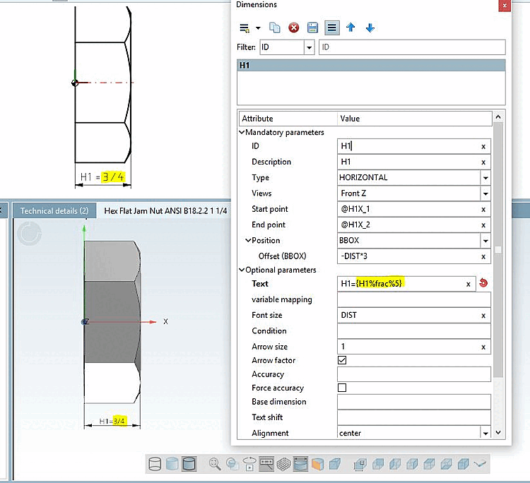 Wenn ein Teil in einer Version geöffnet wird, die Brüche nicht unterstützt, wird der Dezimalwert angezeigt.
