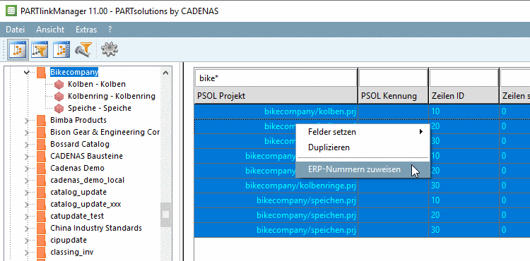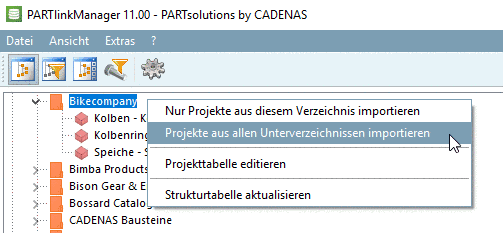 Importieren Sie alle Projekte von "Bikecompany" in den PARTlinkManager.